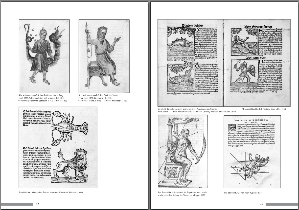 einiger Karten, Vergleichsbeispiele aus anderen Kartenwerken wie Flamsteed, Schiller, Bode, Piccolomini, Zacharias Bornmann und anderen.